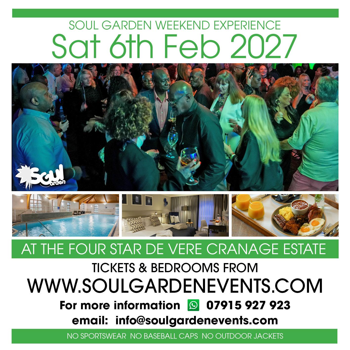 For the last eleven years all Soul Garden events have been full to capacity. Our average attendance is an amazing 550 people making Soul Garden significantly bigger than other similar events . So don’t delay get your tickets today. This is a ticket only event. (No ticket will mean No Entry).